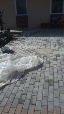 1. Устройство покрытия из плит тротуарных. Укладывалась бывшая в употреблениитротуарная плитка.