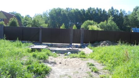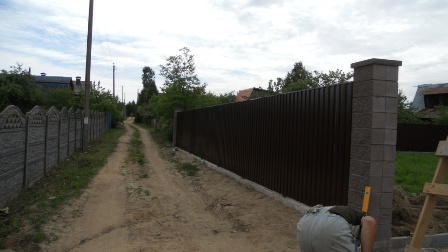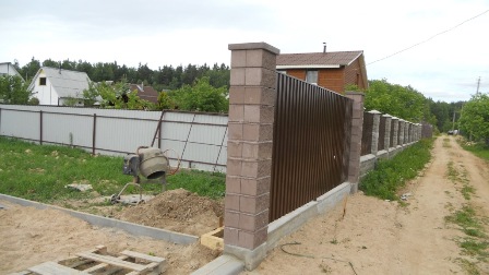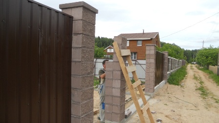 3. Строительство забора из декоративных бетонных блоков бессер с заполнением из профнастила (металлопрофиля). Фундамент забор - железобетонный ростверк на буронабивных сваях.