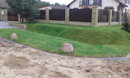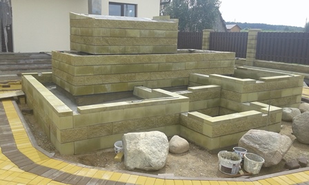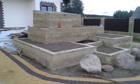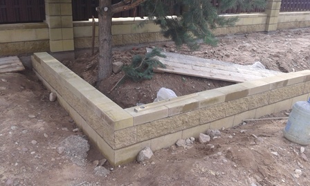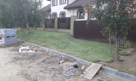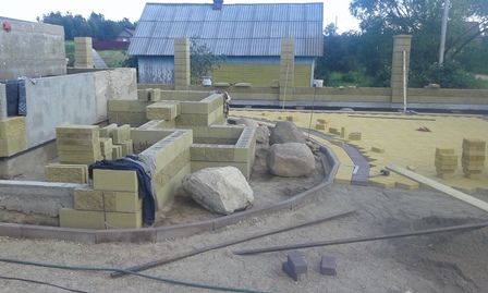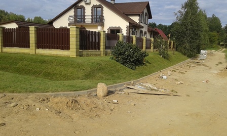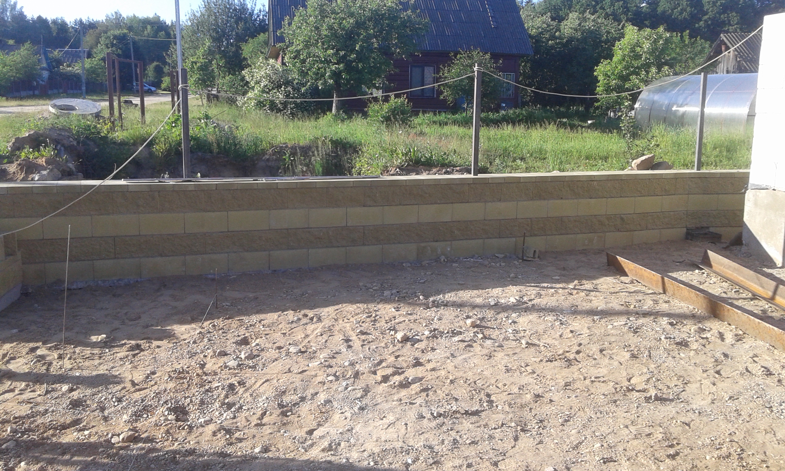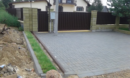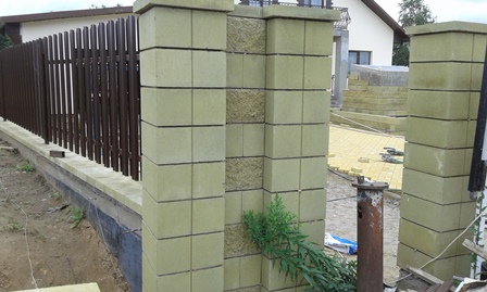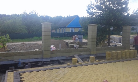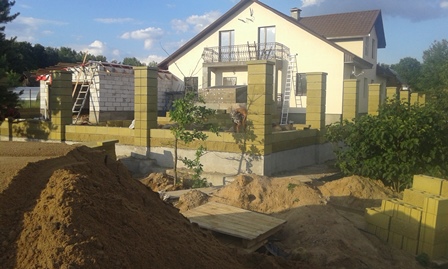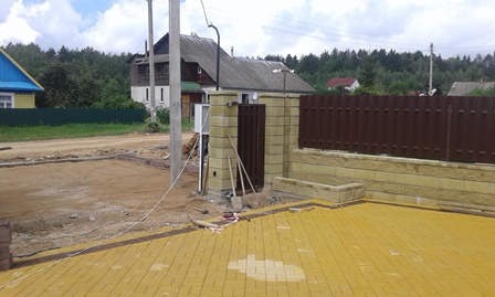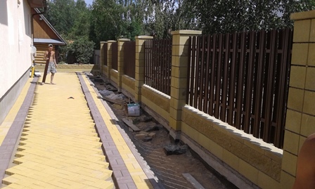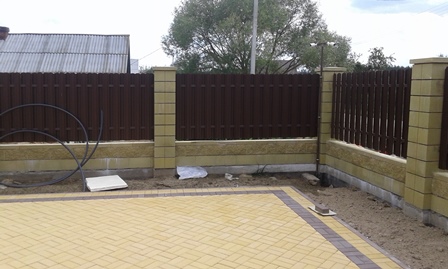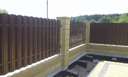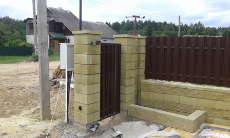 2. Строительство забора из декоративных бетонных блоков "бессер" и металлоштакетника. Установка откатных ворот и калитки