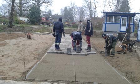 На объекте были построена парковка для легковых автомобилей из плит тротуарных.