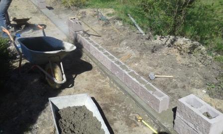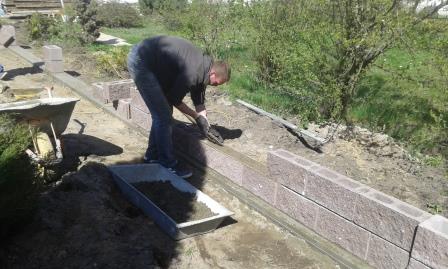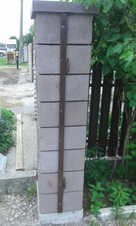 На объекте был построен комбинированный забор из декоративных блоков "бессер-бел" и профнастила. Фундамент забора - железобетонные буронабивные сваи и ростверк