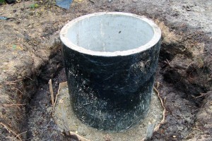 Если погружение бетонных колец остановится вследствие трения о грунт, надо на верхнее кольцо установить платформу с дополнительной нагрузкой.