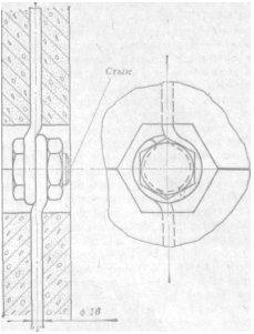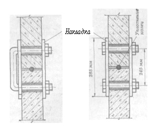 Более надежным является способ соединения колец с помощью стальных стержней, забетонированных в их стенках. Стержни имеют на концах кольцеобразные загибы, куда и вставляют скрепляющие болты.