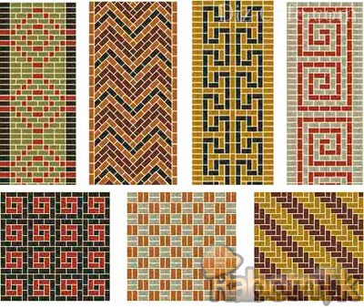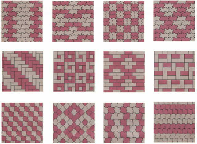 Различные варианты орнамента на тротуарной плитке создаются с помощью цвета, формы и чередования плиток по определенной схеме